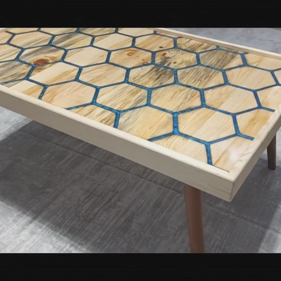 Handmade Pine Coffee Table with Geometric Epoxy Inlay | Unique | WoodEnzo